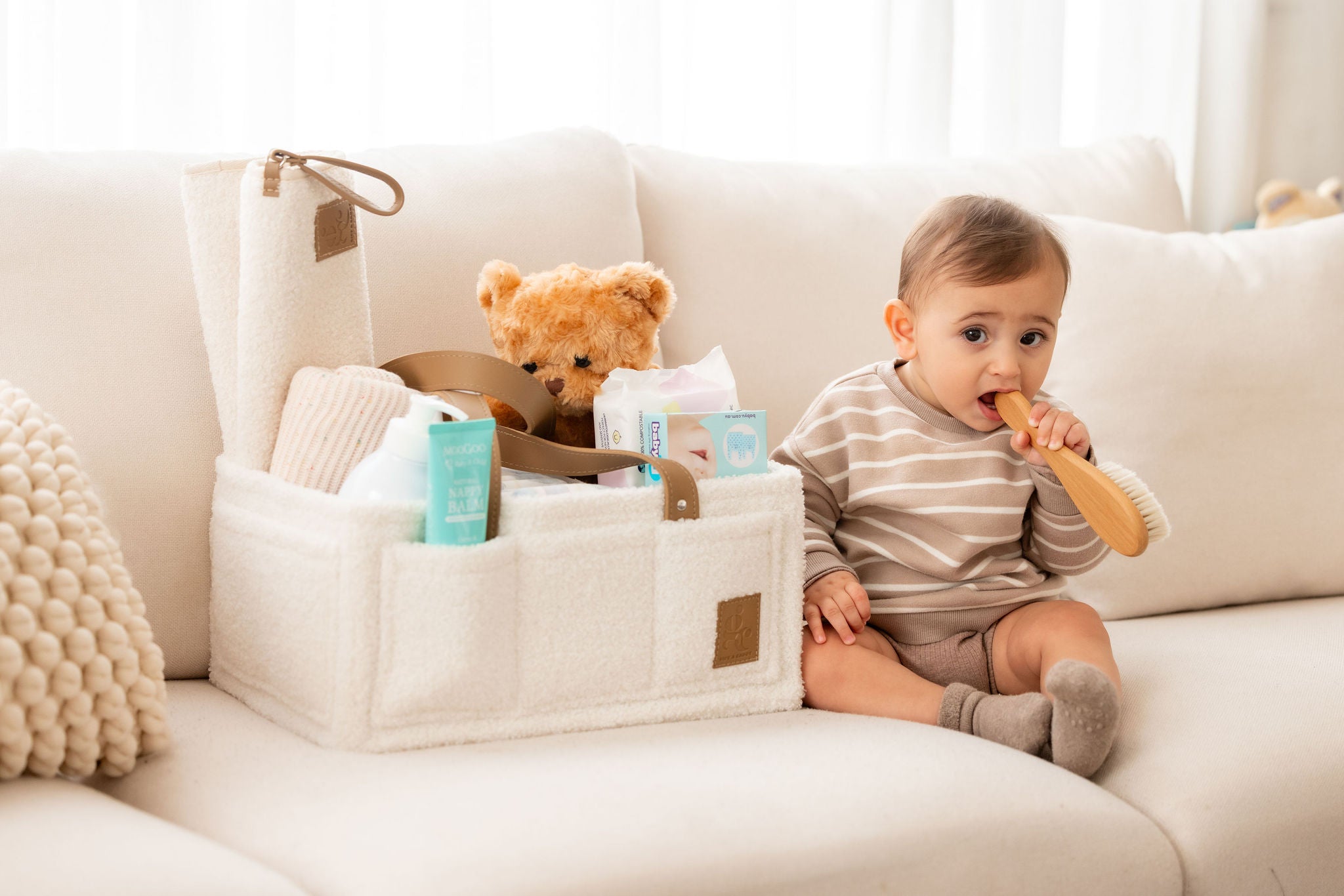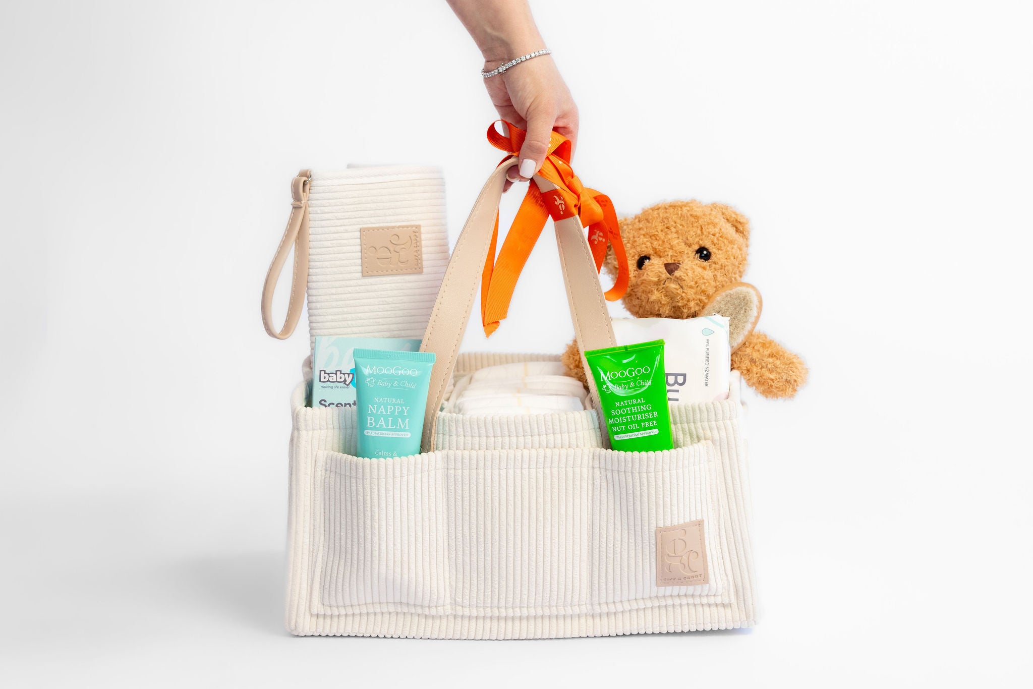 The Teddy Nappy Caddy is the ultimate practical gift for a new mum, offering both style and functionality. Designed to keep everything you need organised and within reach, this caddy is perfect for storing nappies, wipes, clothes, creams, and any other daily essentials.
