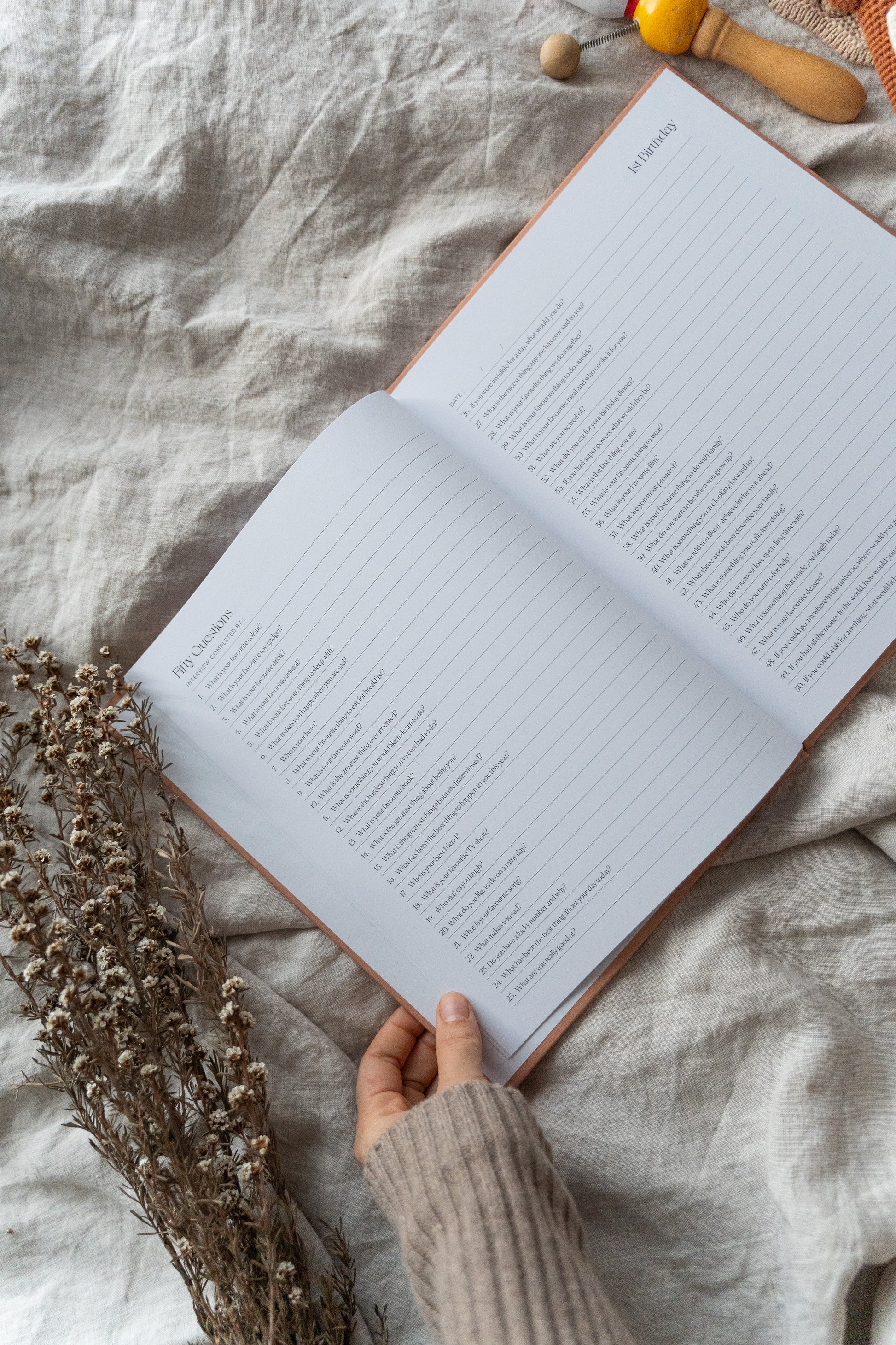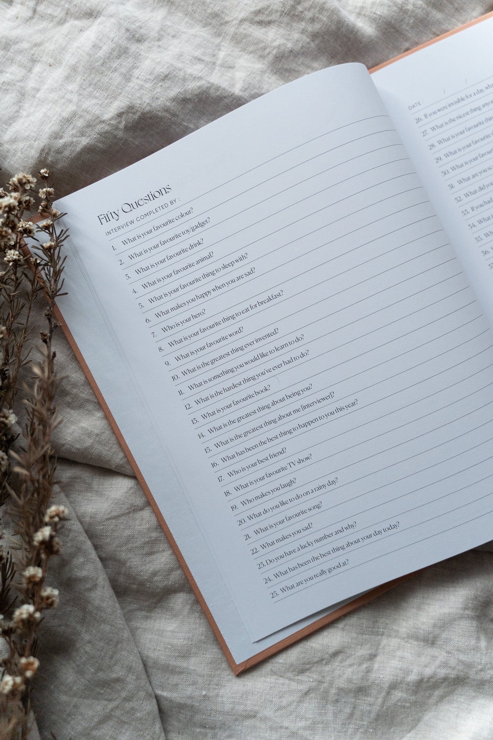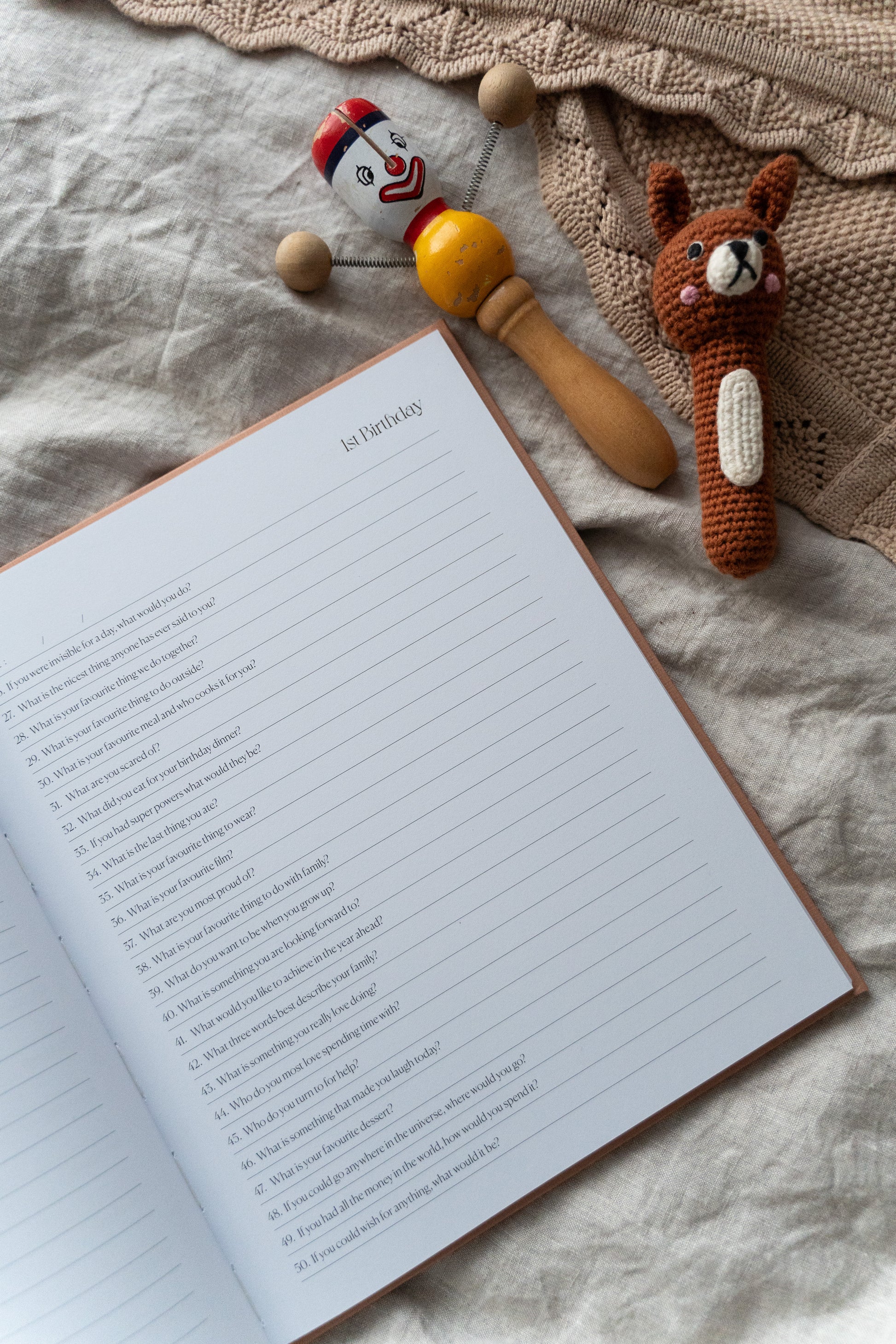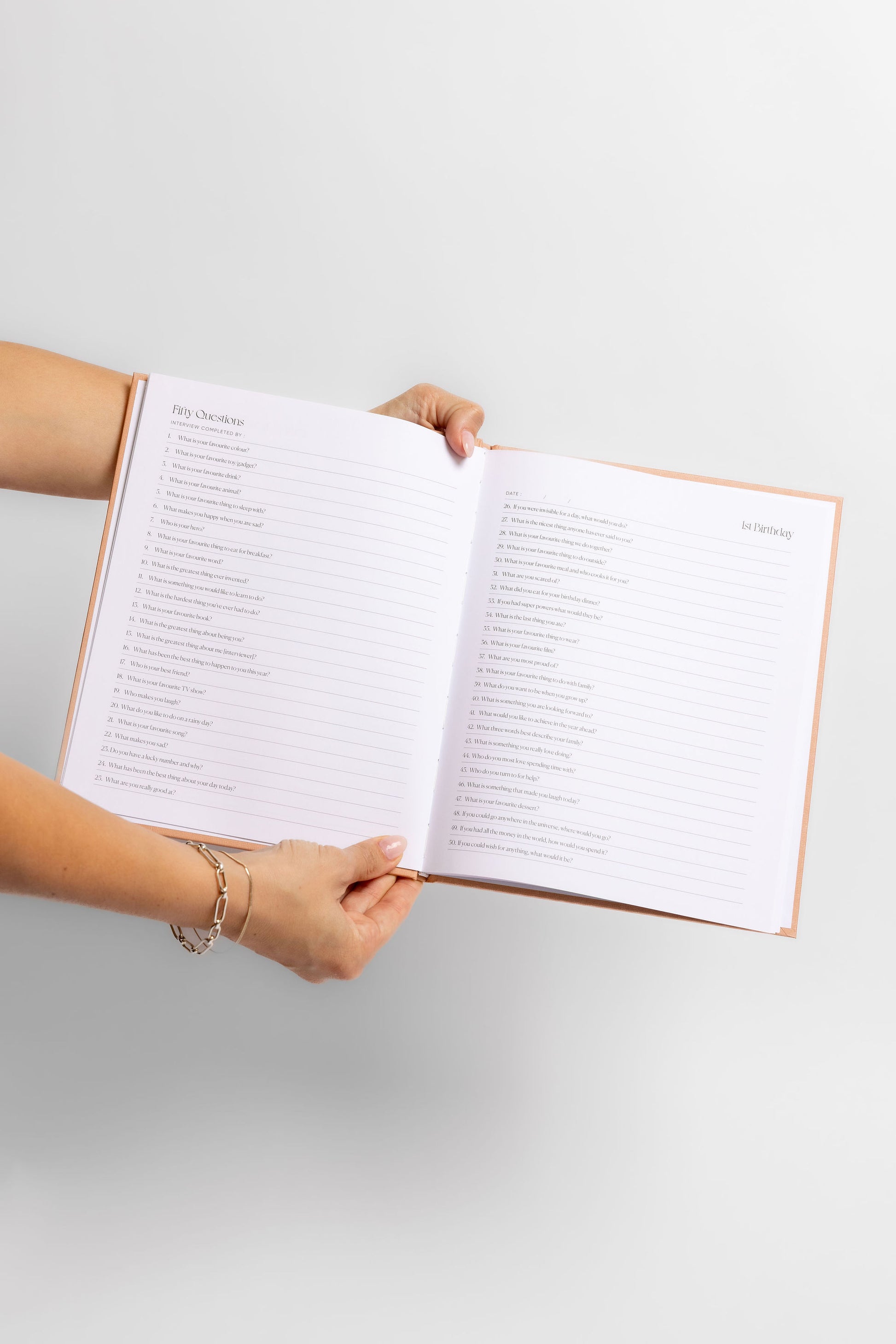 Capture the sweetest moments of your loved one's first 18 years with the Fifty Questions, Eighteen Years Keepsake Baby Journal. Our mindful interactive keepsake journal is perfect for reflecting on your journey as a parent and for keeping safe the memories of your little one's growth. Filled with 50 thoughtfully-curated questions and enough room for photos, notes, hand-written letters, drawings and scribbles this elegant journal will be a treasured memory of your child's first 18 years.