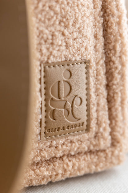 Teddy Mocha with brown vegan leather handles.